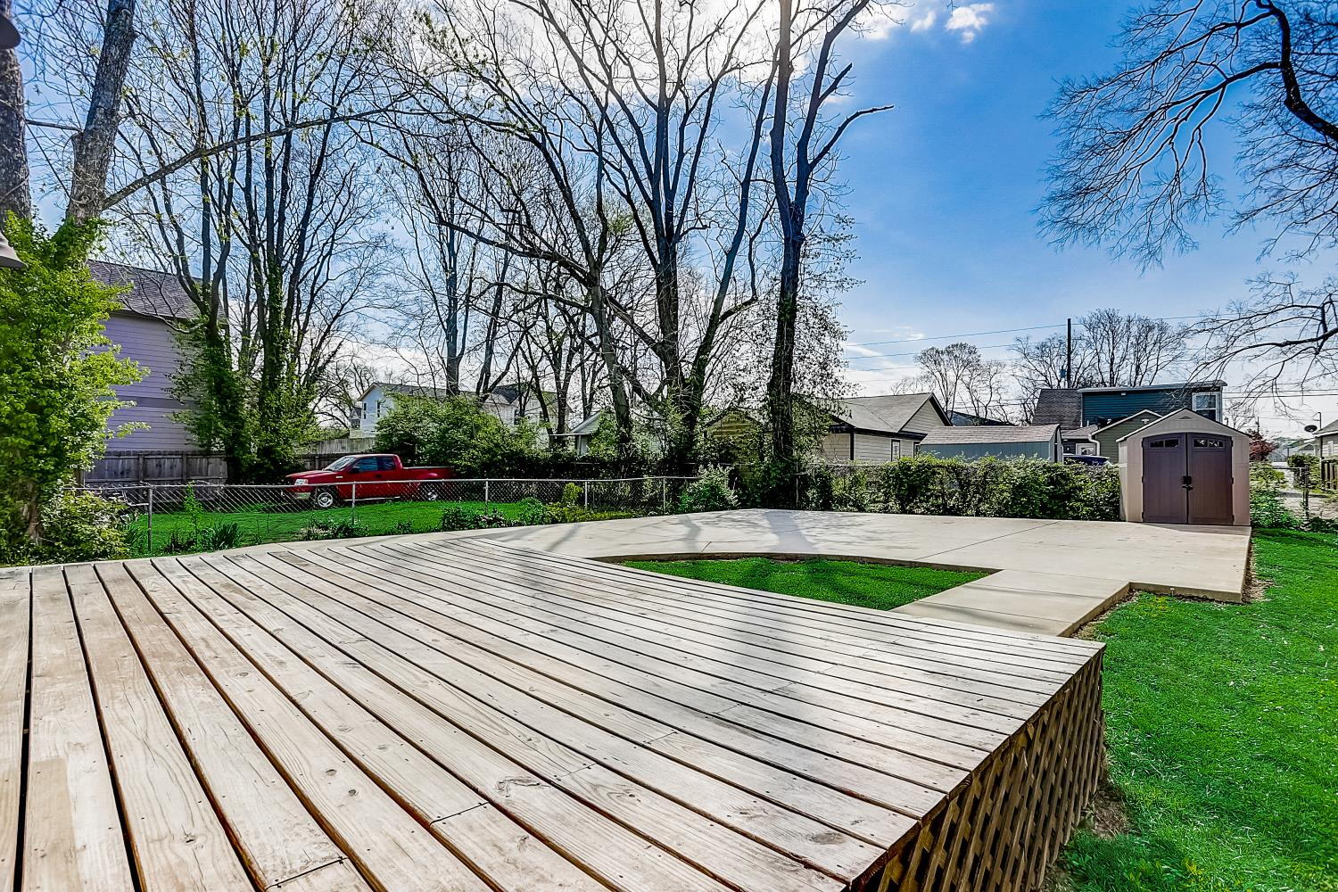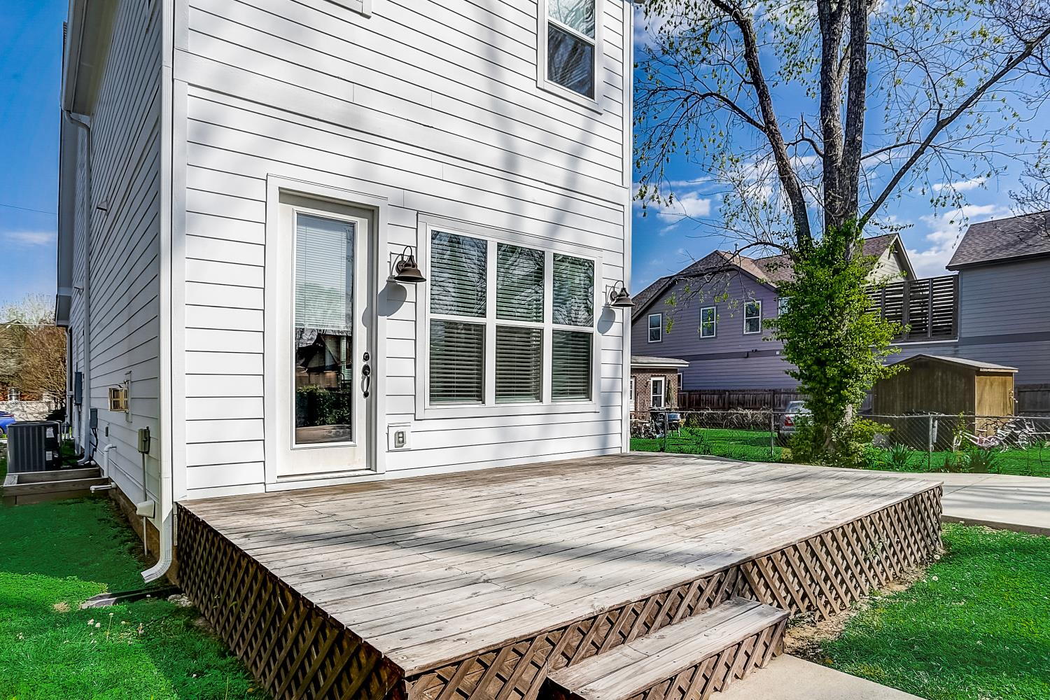 Outdoor living is equally inviting with a wraparound front porch and rear deck, perfect for relaxing or enjoying the peaceful neighborhood setting. The property also includes off-street parking and a backyard storage shed.